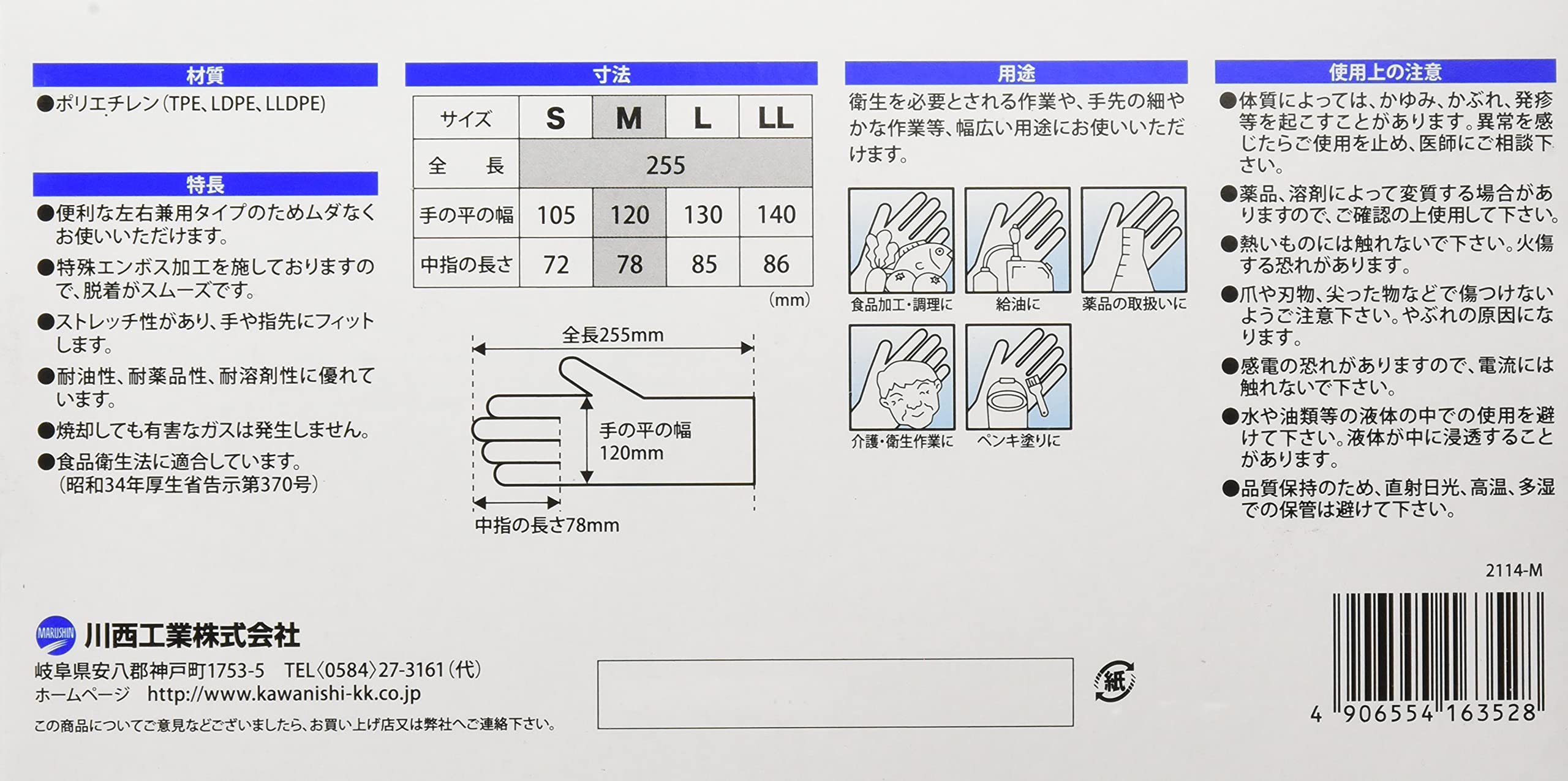 川西工業 #2114 ポリエチレン手袋 ストレッチアルファ 200枚入